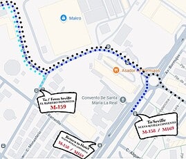 | M-158 | Bollullos de la Mitación - Sevilla (por Bormujos) / Bollullos de la Mitación - Sevilla (por El Barrero, Bormujos) | NUEVA SEVILLA CONVENTO |